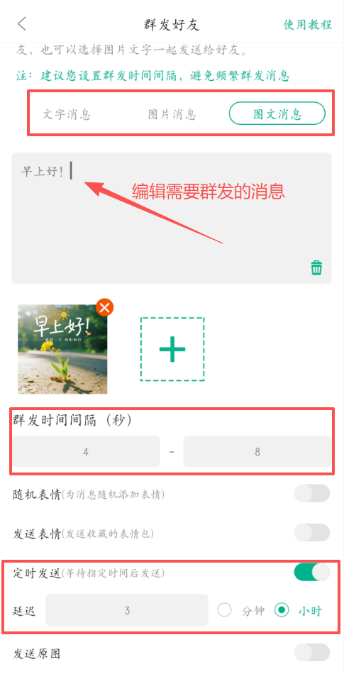 待账号状态恢复后,如确需发送通知,集中或深夜群发容易触发微信限制。里德助手Plus 支持定时群发,按你设定的时间和人数自动发送,有助于降低被系统误判为异常行为的风险。