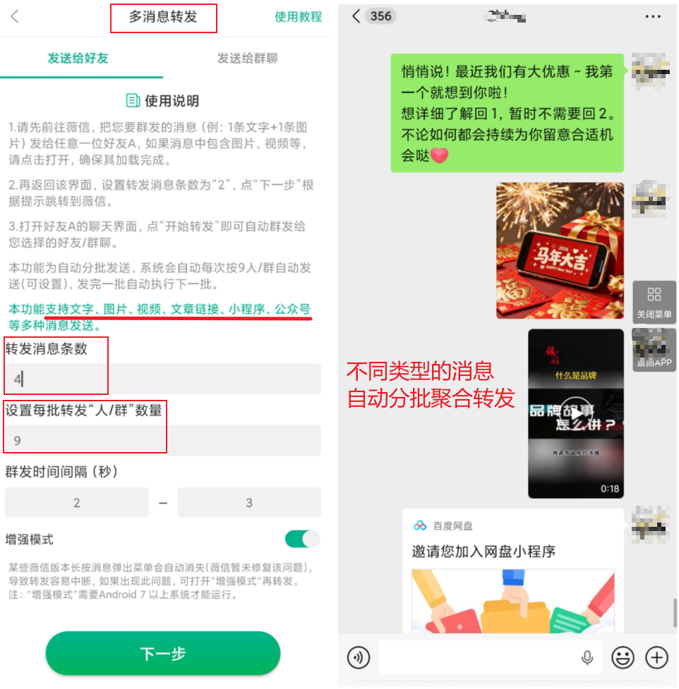 像【里德助手Plus】里的“多消息转发”功能,就比较适合这种场景。